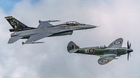Over ‘Flyby Supermarine Spitfire en General Dynamics F-16.’ van Jaap van den Berg