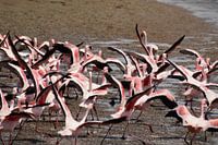 Aan de kust van Namibië vindt je een grote variëteit van wildleven. Zoals de Flamingo's bij Walvisbaai. Vlak bij de stad lopen ze gewoon in de baai.