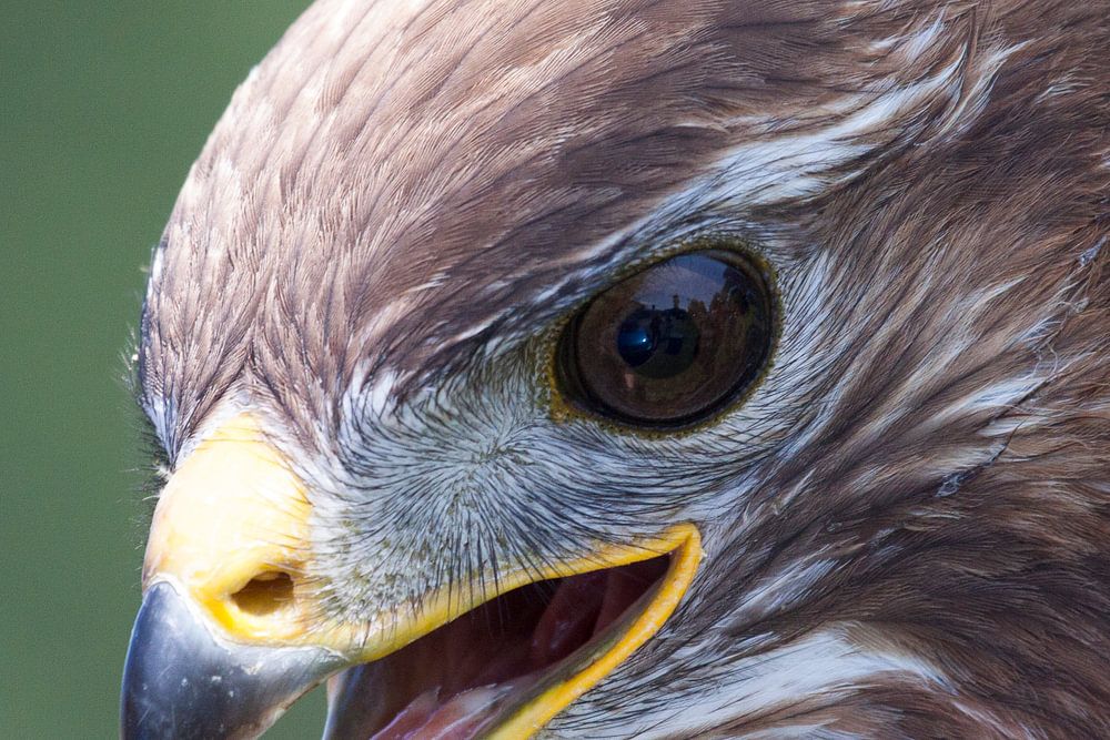 Ontdek de kracht en vastberadenheid van de majestueuze buizerd met dit intrigerende portret. Vereeuwigd in volle waakzaamheid, toont deze buizerd zijn karakteristieke open snavel en tong, klaar om toe te slaan zodra de kans zich voordoet.