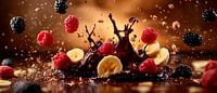 Een heerlijke explosie van sappige bessen en chocoladepracht betovert de kijker. De dynamische spatten roepen sensualiteit en levensvreugde op, terwijl het harmonieuze samenspel van kleuren en texturen uitnodigt tot verwennerij. Ideaal voor een keuken of eetkamer om de eetlust op te wekken en een uitnodigende sfeer te creëren.
