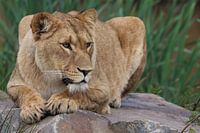 African lioness keeping her eyes on her potential prey..