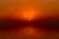 Foggy Sunrise Red tijdens zonsopgang bij het Reindersmeer, Nationaal Park De Maasduinen (Well, Nederland).