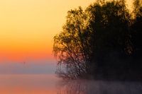Foggy Sunrise Silhouettes aan het Reindersmeer, Nationaal Park De Maasduinen (Well, Noord-Limburg).