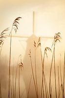 Kinderdijk ontwaakt na een koude mistige nacht met een mooie warme zonsopkomst,