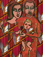 Fotografie en collage met schilderij in rood.