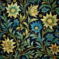 Een botanisch bloemenpatroon in folkloristische stijl. Bloemen en bladeren vullen het vierkant.