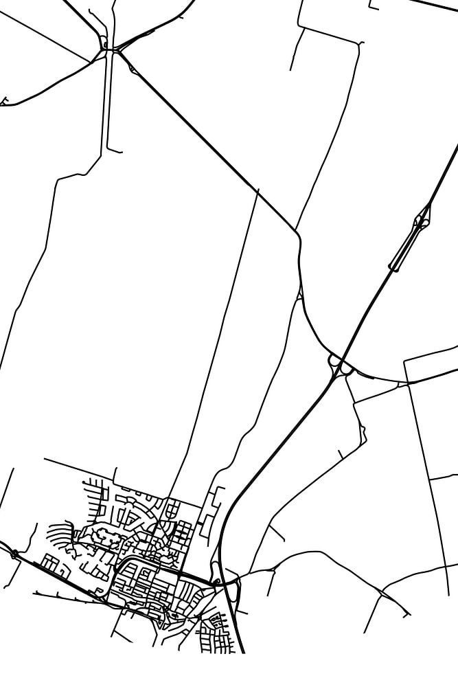 Zwart-witte landkaart, stratenplan of plattegrond van Follega. Follega is gelegen in de gemeente De Fryske Marren, provincie Fryslan. Op de stadskaart zijn alle openbare wegen in Follega opgenomen. Verder is de kaart voorzien van de coördinaten van het centrum van Follega.