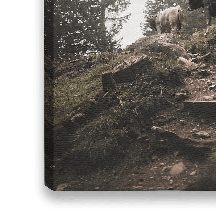 Koop dit landschapskunstwerk Follow the leader | Zwitserland | kudde koeien van Laura Dijkslag op canvas, aluminium dibond, (ingelijste) fotoprint, behang en ArtFrame, op maat geprint in Fine-Art kwaliteit.