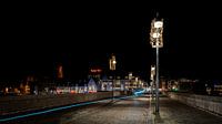 Follow the light at the Sint Servaos Brögk - Mestreech, Opname in de avonduren met lange sluitertijd en op het moment dat een fietser met zijn lamp voorbij komt.