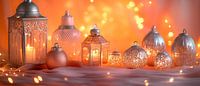 Glinsterende lantaarns in delicaat zilver en rosé creëren een warme, uitnodigende sfeer, terwijl zachte lichtjes fonkelen als sterren. Deze harmonieuze opstelling verleent elke kamer, vooral de woonkamer, een magische elegantie en creëert de perfecte plek voor gezellige avonden en warme gesprekken.