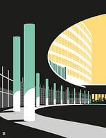 Uit de serie 'Miami Architecture'. Fontainebleau is een luxueus hotel in South Beach met chique restaurants, bruisende nachtclubs, hippe bars en een luxe spa. Bekend van vele films en tv series. Miami Modern in al zijn glorie. Dit is de entree van het hotel. Deze illustratie is gemaakt in 2017 na een studiereis naar de Amerikaanse stad in Florida. Gemaakt in Adobe Illustrator.