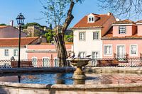 Duiven bij een fontein in de wijk Graca in Lissabon, Portugal.