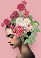 Dit werk (een collage van afbeeldingen) heeft een roze achtergrond en ademt rust, zomer en schoonheid uit.