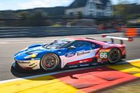 Ford Chip Ganassi Racing Ford GT-raceauto die door Eau Rouge rijdt tijdens de 2016 Six Hours of Spa van het FIA World Endurance Championship op het circuit van Spa-Francorchamps.