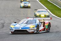 Ford GT raceauto van het Chip Ganassi Racing Ford-team op hoge snelheid tijdens de zes uur van Spa in 2016 van het FIA-wereldkampioenschap Endurance op het circuit van Spa-Francorchamps.