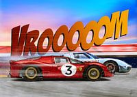 Illustratie van een serie rijdende raceauto's die het tegen elkaar opnemen. Een dynamisch autokunstwerk. Ontworpen met passie voor liefhebbers van klassieke racewagens.