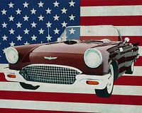 Dit schilderij van de Ford Thunderbird Convertible, gebouwd in 1957, met de Amerikaanse vlag op de achtergrond kan worden gekocht in verschillende maten en worden afgedrukt op doek en op hout en metaal. U kunt het schilderij ook laten afwerken met een acrylplaat er overheen waardoor het meer diepte krijgt.