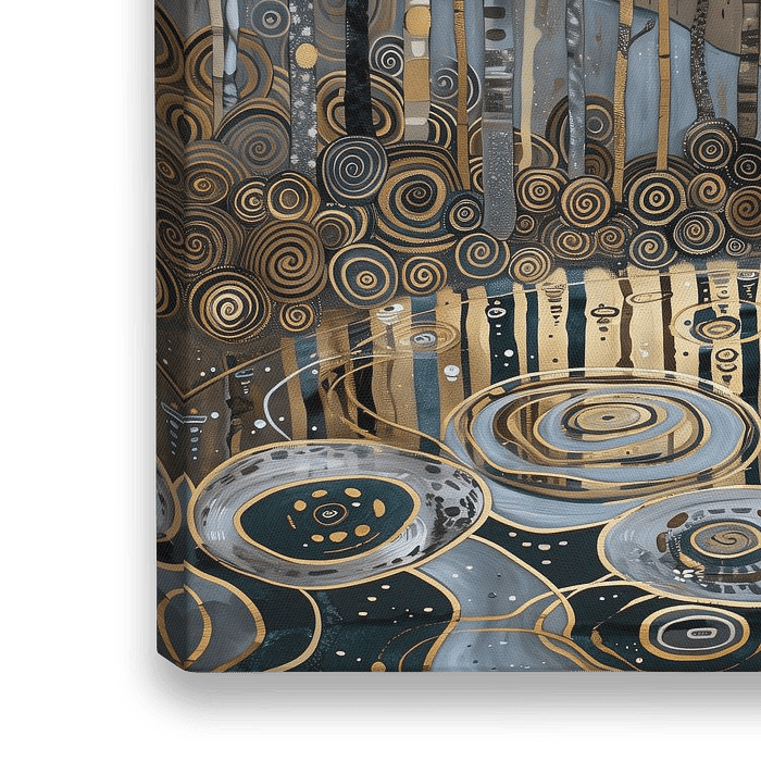 Fantasie landschap met een meertje in het bos in de stijl van Gustav Klimt.