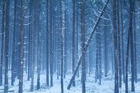 Coniferous forest in winter frost. Bavarian Alps, Germany