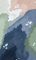 Dit kunstwerk is geïnspireerd door de bossen en meren van Zweden. Geschilderd in een simplistische Scandinavische stijl. De donker groene dennenbomen, het licht groene mos en de blauwe meren. Allemaal abstract in kleuren vormgegeven. De vormen en kleuren in dit schilderij wisselen elkaar af.