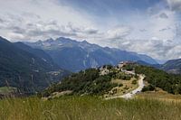 Uitzicht op het prachtige nationale park Vanoise en het historische Fort Marie-Christine bij Aussois in de Franse Alpen. Het hoog boven de vallei gelegen fort heeft een prachtig uitzicht op de bergen.