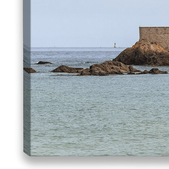 Prachtige opname van 17de eeuwse getijde vesting Fort National voor de kust van Saint-Malo in Bretagne, Frankrijk, in de zomer tijdens vloed