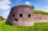 Vleugel van het Fort Pannerden, een voormalig 19e-eeuws fort in de Nederlandse gemeente Lingewaard. Het fort is strategisch gelegen op de splitsing van de rivier de Waal en het Pannerdensch kanaal, later de Nederrijn. Deze foto is gemaakt in April 2019