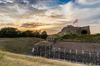 Fort Sint Pieter in Maastricht tijdens zonsondergang. Tijdens de zonsondergang kwamen er prachtige kleuren tevoorschijn die voor een dramatisch effect zorgden en het middeleeuwse fort extra benadrukken