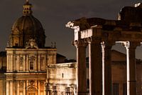 Het historische Forum Romanum in Rome bij nacht. Het forum was in de gloriedagen van het Romeinse Rijk het politieke, juridische, religieuze en commerciële centrum van de stad.