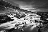 Fossalar, Een kleine waterval of stroomversnelling langs de zuidkust van IJsland, niet ver van Dverghamrar. Een plek waar je zo aan voorbij zou rijden als je in een gewone auto rijd. Vanuit een gewone personen auto is de waterval bijna onzichtbaar. Een wonderbaarlijk stukje natuur, zo voor het grijpen in dreigend zwart/wit.