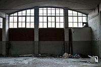 Foto van een raam in de verlaten Markthallen in Meppel.