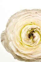 Foto van een close up van een witte ranonkel.