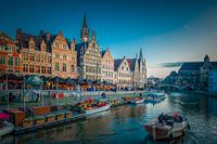 Europa, België, Gent, Stad, Binnenstad, Oude Stad, Grasbrücke, Grasbrug, Graslei, Post-Plaastoren, Gralei, Leie, Leiehafen, Skyline, Haven