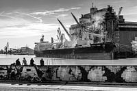 Hamburg, haven, Wilhelmsburg, Elbe, Duitsland, zwart, wit, schip, vrachtschip, vrachtschip, landschappen & reizen, licht, stad, architectuur, fotografie, stedelijk, water, zwart-wit