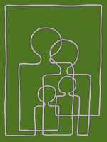 Foursome in Olive green/Purple Line, komt uit de serie, familie lijntekeningen. Deze tekening geeft de bijzonder sterke verbondenheid van een familie weer. Deze personen zijn verbonden door één lijn wat de krachtige band nog meer benadrukt.