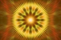 Stralen vanuit het midden naar de rand. Tandwiel vormig en draaiende cirkels en abstracte vormen. Je zou je je een geel oranje zon kunnen verbeelden in het midden met zonnestralen. Of een heerlijke…