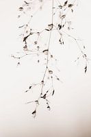 Het is de moeite waard om de wereld vanuit kikkerperspectief te bekijken want aan deze grasjes hingen na een koude nacht kleine bevroren druppeltjes. Tegen de lichte lucht steken ze mooi fragiel af. Gezien door de macrolens lijkt het geheel veel groter dan het in werkelijkheid is!