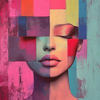 De fragmentatie kan worden geïnterpreteerd als een metafoor voor de menselijke ervaring. Niemand is één ding; we zijn allemaal opgebouwd uit herinneringen, emoties, en invloeden – soms ordelijk, soms chaotisch. De heldere en contrasterende kleuren weerspiegelen een breed spectrum aan gevoelens, van passie en kracht (rood, roze) tot kalmte en reflectie (blauw, geel). Toch zijn deze contrasten niet conflictueus, maar complementair, wat suggereert dat schoonheid te vinden is in balans, zelfs binnen schijnbare tegenstellingen.