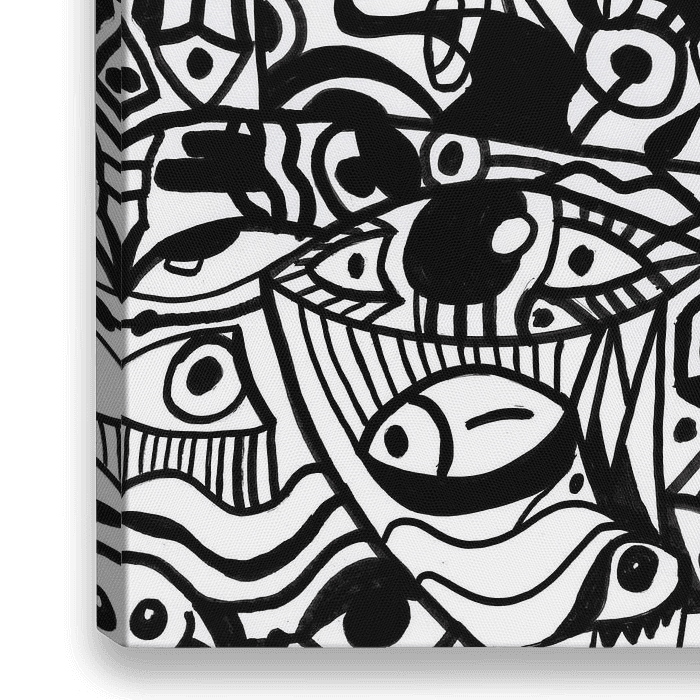 Fragments of a Forgotten Dream is een intrigerend abstract kunstwerk dat de grens tussen realiteit en verbeelding vervaagt. De zwart-witte compositie is een dynamisch samenspel van ogen, gezichten en organische vormen, die samen een hypnotiserend patroon creëren. De krachtige lijnen en complexe structuren roepen een gevoel van mysterie…