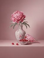 Framboos Parkiet is een verstild schilderij uit de collectie Vogels en Bloemen, geïnspireerd op de 17e-eeuwse Hollandse schildertraditie, waarin eenvoud, licht en balans centraal staan. De compositie is minimalistisch en ruim opgezet, met veel negatieve ruimte en een zachte, subtiele lichtval die het geheel een rustige, bijna…