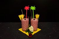 Framboos en ananas kokos cocktail met rum. Kleurrijke cocktails in glazen
