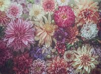 Dahlia's en diverse bloemen ondergedompeld of drijvend in water