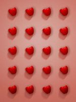 Dit fotografische werk toont 20 rode frambozen, gelijkmatig gerangschikt in vijf rijen en vier kolommen op een lichtroze achtergrond. De vruchten zijn levensecht afgebeeld, met al hun fijne details en texturen. De regelmatige plaatsing creëert een duidelijk, bijna grafisch raster dat een spannend contrast vormt met de organische onregelmatigheid van de frambozen.