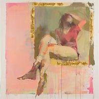 Stilleven van een vrouw in een schilderij. Haar benen hangen buiten de rand, dit wekt de illusie van leven. Gouden schakeringen in de lijst benadrukken het ooit zo levenslustig zijn. Overpeinzingen en wanhoop hoe verstrikt te zijn geraakt in de beklemmingen en kaders van de dag. Op weg naar vrijheid en nieuwe inspiratie en gedachten.…