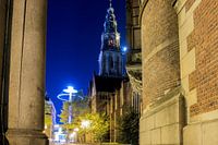 Foto gemaakt naast het provinciehuis in de richting van de Martinitoren met een kermisattractie ernaast.