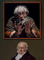 Realistisch schilderij in acryl van Francisco Goya met zijn schilderij van een wanhopige man met te veel vingers, geschilderd door de Nederlandse kunstenaar Paul Meijering - het Originele schilderij ia 120 x 90 cm.