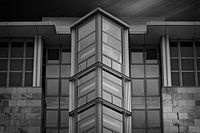 Zwart-Wit opname van de kantoorgebouwen uit het moderne zakencentrum van Frankfurt am Main.