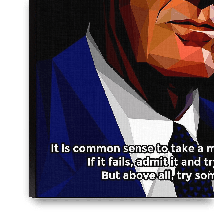 Lage Poly abstracte citatenillustratie van Franklin D. Roosevelt als president. Een van de beroemde citaten van Franklin D. Roosevelt. Geschikt voor iemand die motivatie nodig heeft of gewoon decoratie.