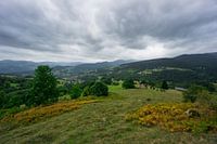 Frankrijk - Eenzame huizen en dorp in indrukwekkend groen landschap van franse vogezen nabij route de cretes