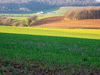 Als je van Chaugey (FR, Côte-d'Or, Bourgogne, Parc national de forêts) richting Beneuvre loopt, word je getrakteerd op dit uitzicht. Verschillende akkers die in elkaar overlopen. Een alleenstaande boerderij tegen de bosrand. De boerderij staat aan de weg richting Bure-les-Templiers. De basis van dit beeld is een foto. Met materialen als…